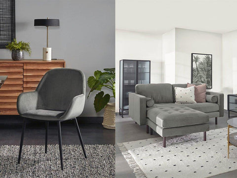 Choosing a certain colour is another way to ensure that your sofa and dining chairs match. Choose pieces in the same shade or palette so that everything is linked by the colour. For example, you could look for chairs in the same upholstery as the sofa. If you are more daring or want to use different colours in your living room dining room, then we have another idea for you - fabrics.